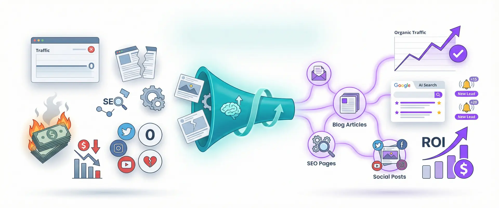 只需发布文章,即可自动生成SEO优化页面。支持Google搜索及ChatGPT、Gemini等AI搜索引擎,还能从文章自动生成社交媒体内容。
